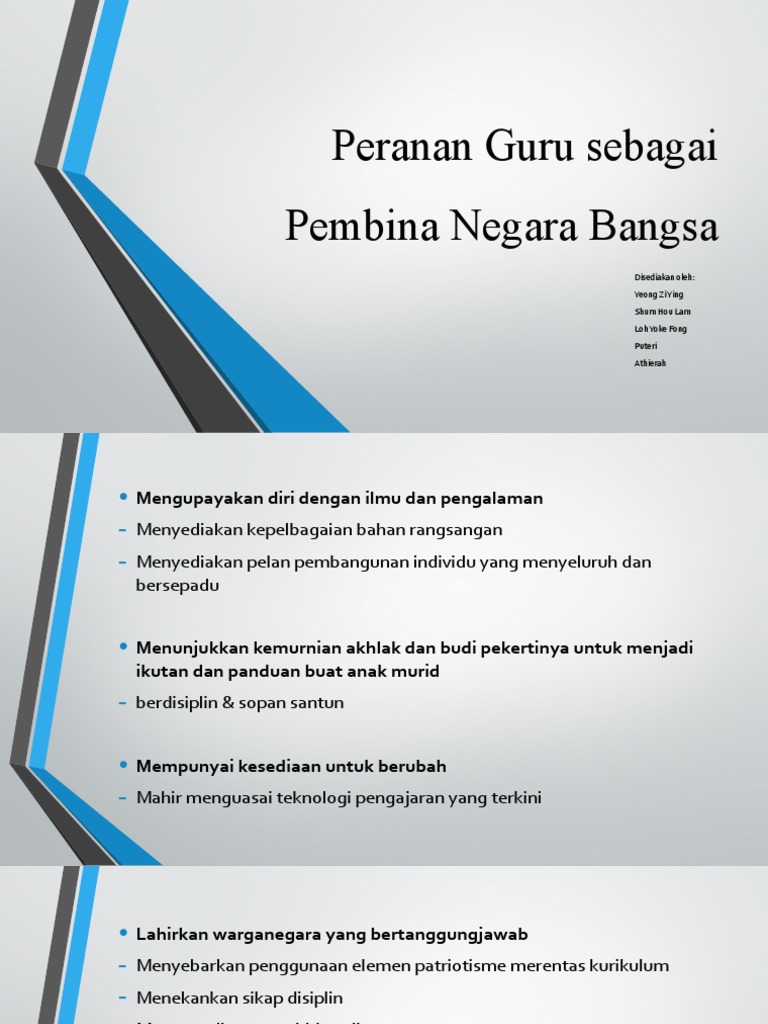 Peranan guru sebagai pembina negara bangsa. Essay implikasi kepada peranan guru sebagai pembina negara. Peranan Guru Sebagai Pembina Negara Bangsa HUBUNGI KAMI.